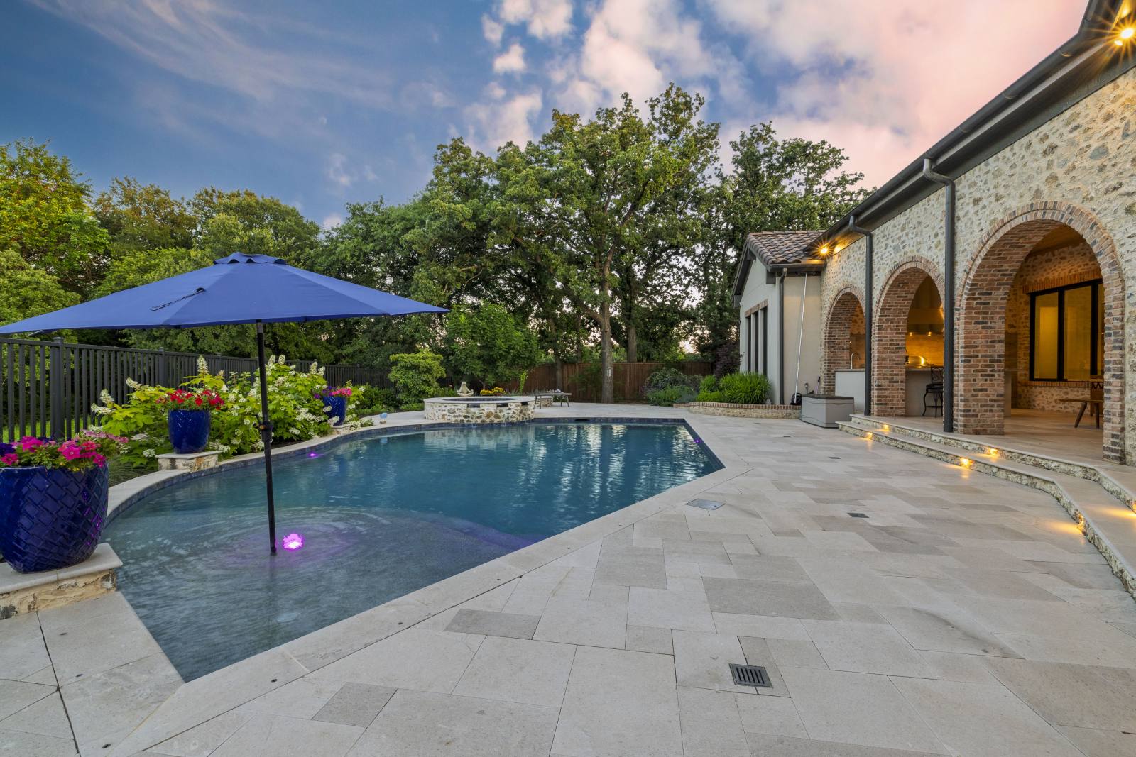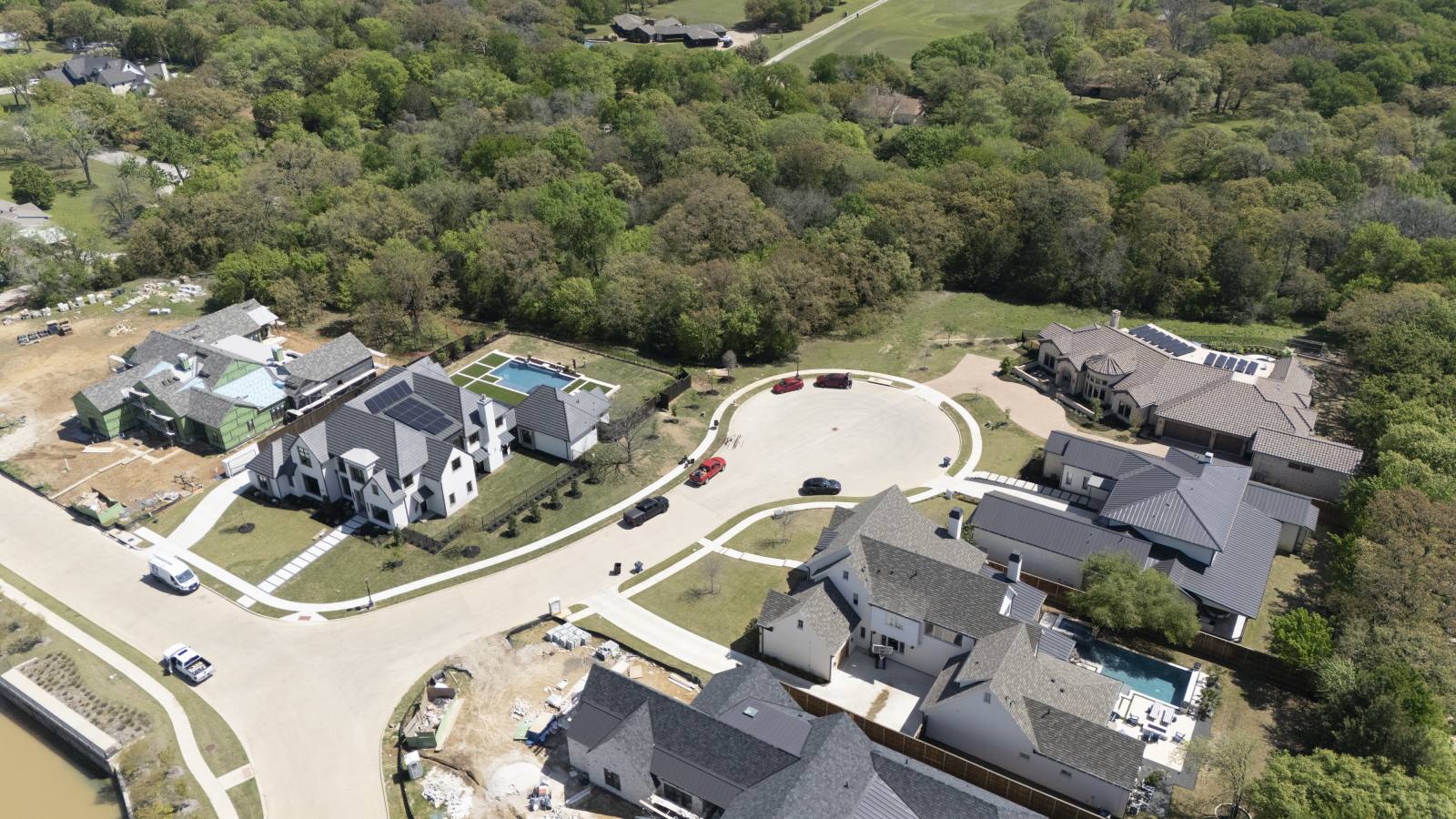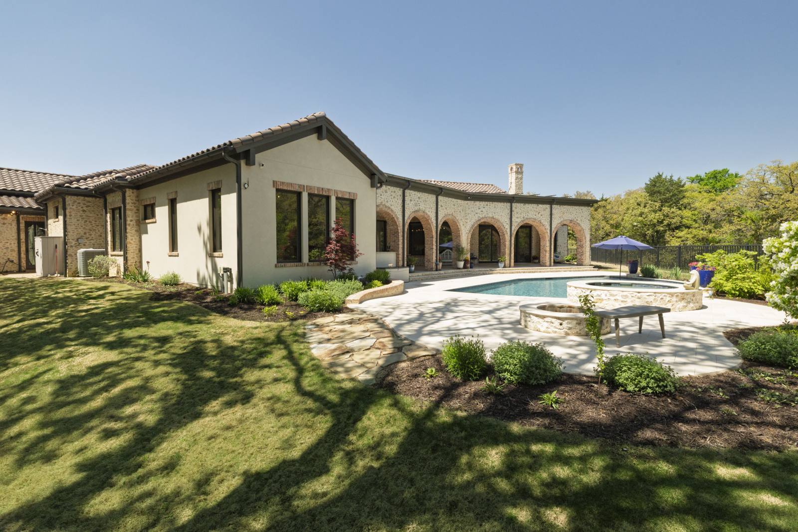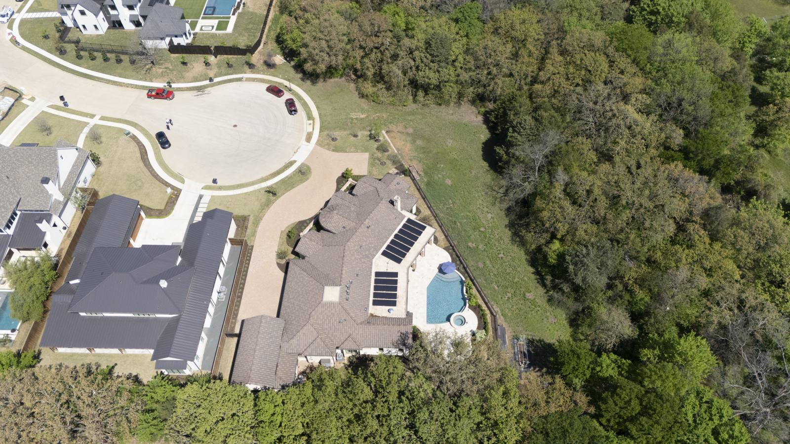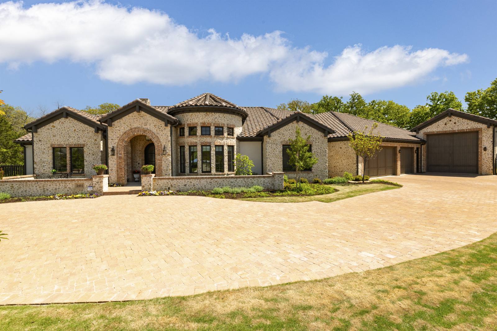 Nestled in the prestigious gated community of Stony Brook, this custom SCH award-winning Mediterranean estate offers 4,501 square feet of refined living space in a serene cul-de-sac backing to a greenbelt with no neighbors on one side. Designed for both elegance and comfort, the home features soaring ceilings, hand-scraped hardwood floors in living areas, and tile finishes throughout each of the six bathrooms. Four spacious bedrooms each include an ensuite bath, while a thoughtfully designed fourth garage bay with full bath accommodates an RV or flexible use. The open-concept kitchen and living area is the heart of the home, anchored by a large center island with breakfast bar and hidden storage. Culinary enthusiasts will appreciate the 7-burner gas cooktop, vent hood, built-in counter-depth refrigerator, and dishwasher. A separate prep kitchen with pantry, double Wolf ovens, microwave, and warming drawer ensures effortless entertaining. The formal dining room provides an elegant setting for gatherings, while the eat-in area overlooks the private backyard oasis. Outdoor living is elevated with a heated pool (with cover), heated spa, and tranquil water feature. The covered patio includes a fully equipped outdoor kitchen with commercial vent hood over the gas grill, complemented by a fire pit and convenient half bath. Modern amenities include owned solar panels with a 25-year transferable warranty and a smart home system controlling lighting, sound, security, fire suppression, and climate. The extra-deep three-car garage offers two prewired EV charging ports, while the fourth bay is designed for RV storage. Zoned for Keller ISD with open enrollment for Carroll ISD, this home combines award-winning craftsmanship, advanced technology, and resort-style amenities in one of the area’s most desirable communities. A rare opportunity to experience luxury, privacy, and convenience in perfect harmony.