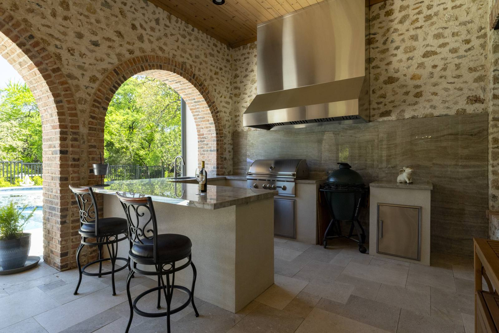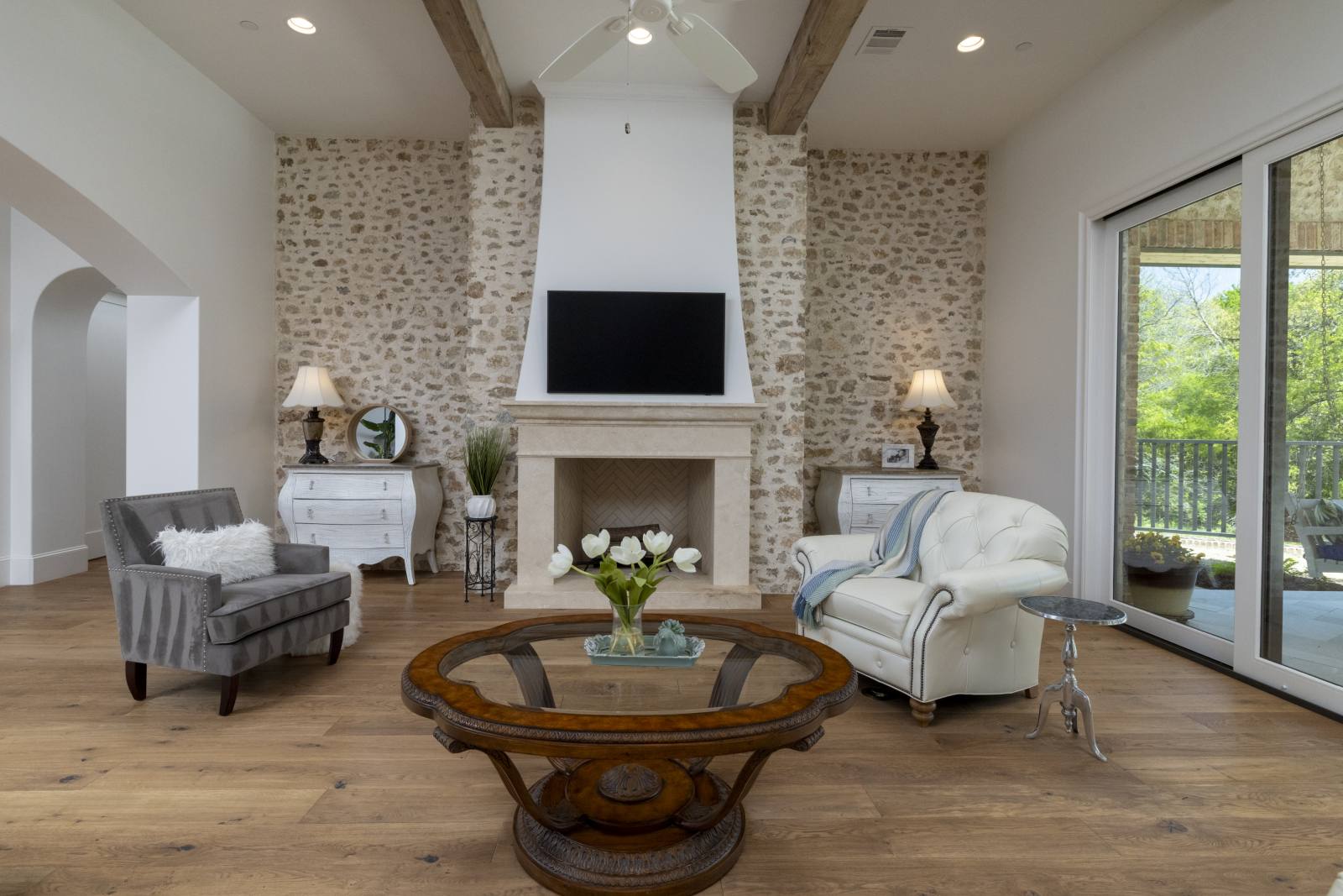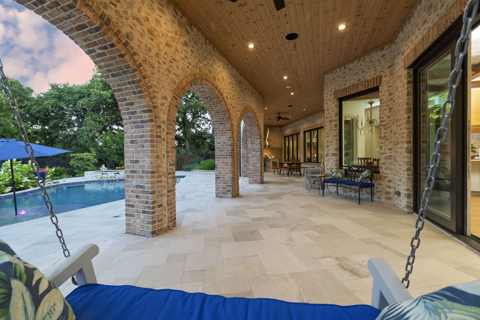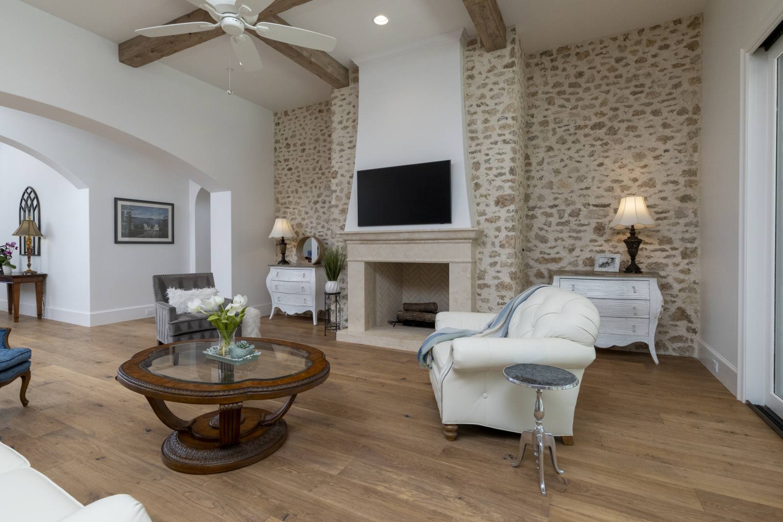 Nestled in the prestigious gated community of Stony Brook, this custom SCH award-winning Mediterranean estate offers 4,501 square feet of refined living space in a serene cul-de-sac backing to a greenbelt with no neighbors on one side. Designed for both elegance and comfort, the home features soaring ceilings, hand-scraped hardwood floors in living areas, and tile finishes throughout each of the six bathrooms. Four spacious bedrooms each include an ensuite bath, while a thoughtfully designed fourth garage bay with full bath accommodates an RV or flexible use. The open-concept kitchen and living area is the heart of the home, anchored by a large center island with breakfast bar and hidden storage. Culinary enthusiasts will appreciate the 7-burner gas cooktop, vent hood, built-in counter-depth refrigerator, and dishwasher. A separate prep kitchen with pantry, double Wolf ovens, microwave, and warming drawer ensures effortless entertaining. The formal dining room provides an elegant setting for gatherings, while the eat-in area overlooks the private backyard oasis. Outdoor living is elevated with a heated pool (with cover), heated spa, and tranquil water feature. The covered patio includes a fully equipped outdoor kitchen with commercial vent hood over the gas grill, complemented by a fire pit and convenient half bath. Modern amenities include owned solar panels with a 25-year transferable warranty and a smart home system controlling lighting, sound, security, fire suppression, and climate. The extra-deep three-car garage offers two prewired EV charging ports, while the fourth bay is designed for RV storage. Zoned for Keller ISD with open enrollment for Carroll ISD, this home combines award-winning craftsmanship, advanced technology, and resort-style amenities in one of the area’s most desirable communities. A rare opportunity to experience luxury, privacy, and convenience in perfect harmony.