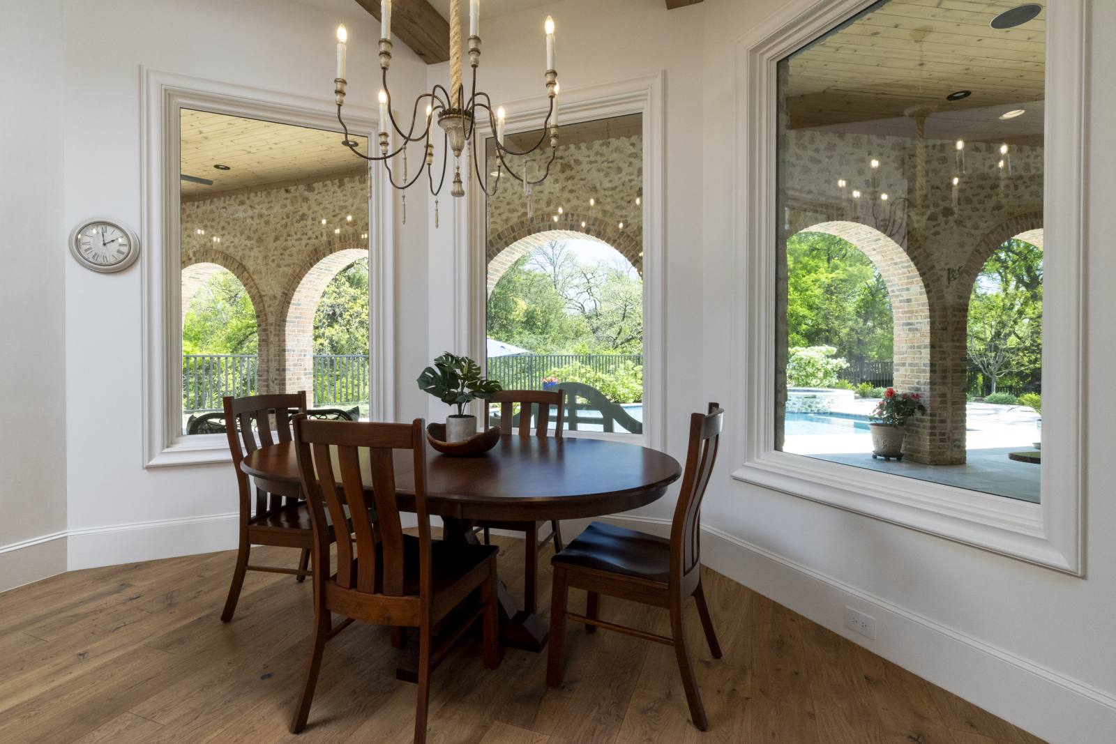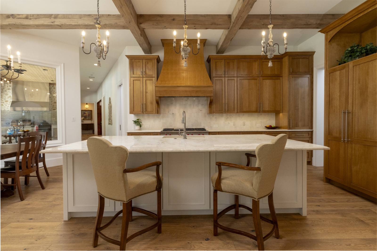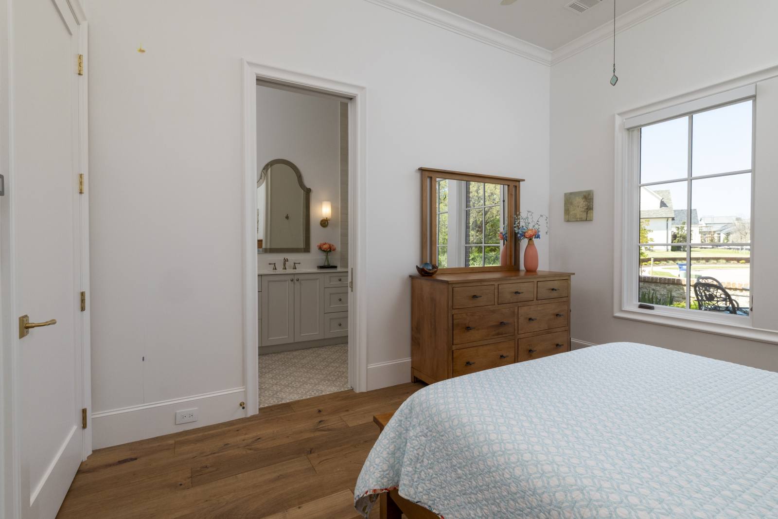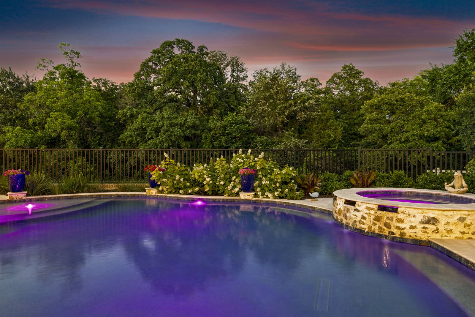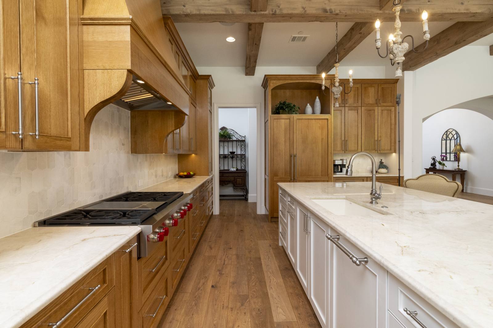 Nestled in the prestigious gated community of Stony Brook, this custom SCH award-winning Mediterranean estate offers 4,501 square feet of refined living space in a serene cul-de-sac backing to a greenbelt with no neighbors on one side. Designed for both elegance and comfort, the home features soaring ceilings, hand-scraped hardwood floors in living areas, and tile finishes throughout each of the six bathrooms. Four spacious bedrooms each include an ensuite bath, while a thoughtfully designed fourth garage bay with full bath accommodates an RV or flexible use. The open-concept kitchen and living area is the heart of the home, anchored by a large center island with breakfast bar and hidden storage. Culinary enthusiasts will appreciate the 7-burner gas cooktop, vent hood, built-in counter-depth refrigerator, and dishwasher. A separate prep kitchen with pantry, double Wolf ovens, microwave, and warming drawer ensures effortless entertaining. The formal dining room provides an elegant setting for gatherings, while the eat-in area overlooks the private backyard oasis. Outdoor living is elevated with a heated pool (with cover), heated spa, and tranquil water feature. The covered patio includes a fully equipped outdoor kitchen with commercial vent hood over the gas grill, complemented by a fire pit and convenient half bath. Modern amenities include owned solar panels with a 25-year transferable warranty and a smart home system controlling lighting, sound, security, fire suppression, and climate. The extra-deep three-car garage offers two prewired EV charging ports, while the fourth bay is designed for RV storage. Zoned for Keller ISD with open enrollment for Carroll ISD, this home combines award-winning craftsmanship, advanced technology, and resort-style amenities in one of the area’s most desirable communities. A rare opportunity to experience luxury, privacy, and convenience in perfect harmony.