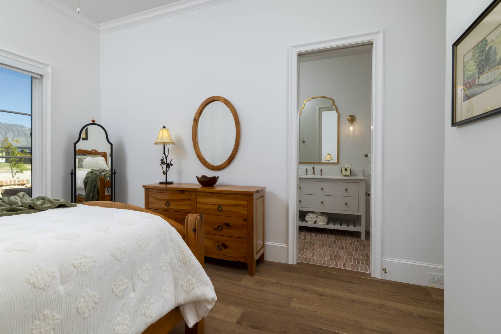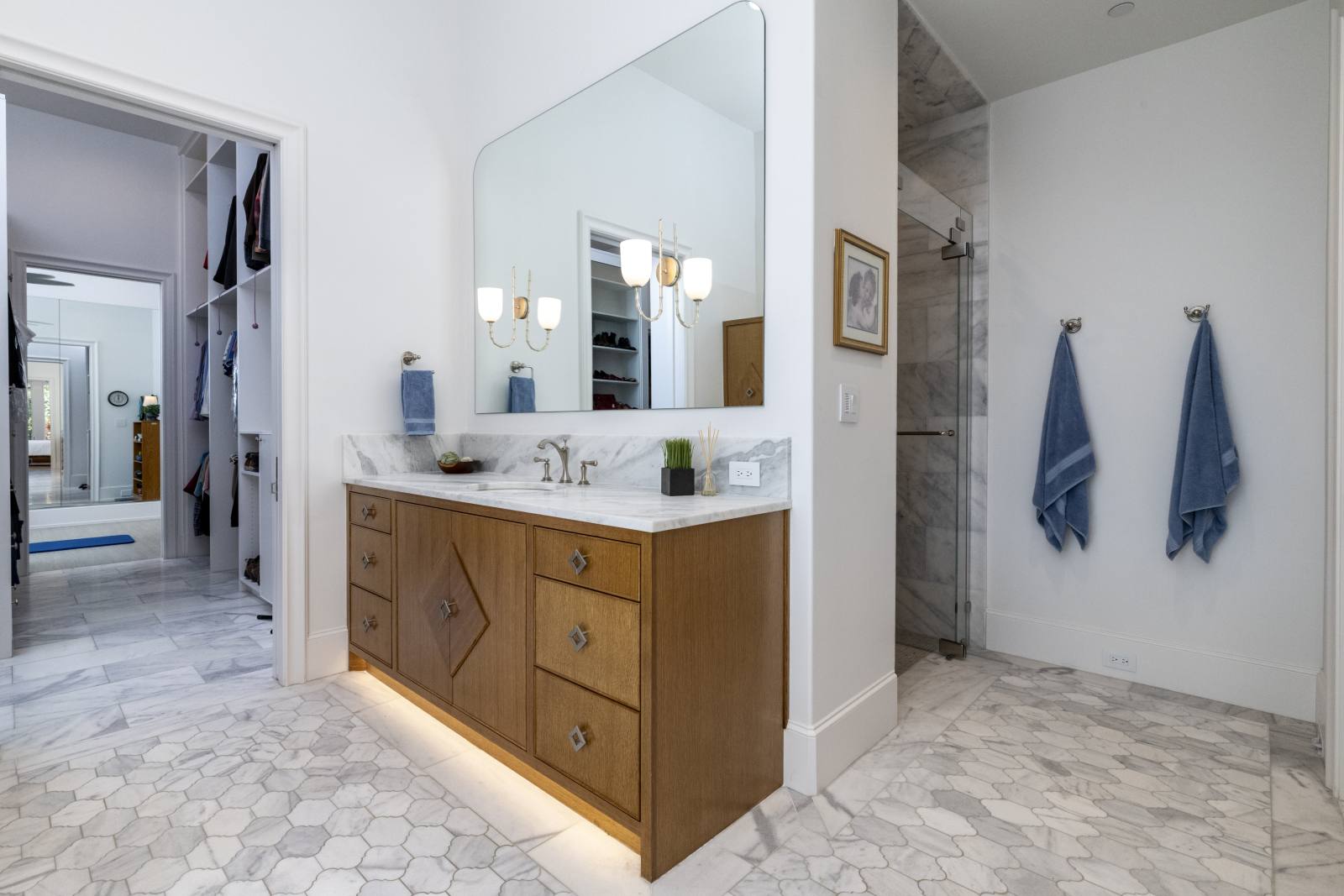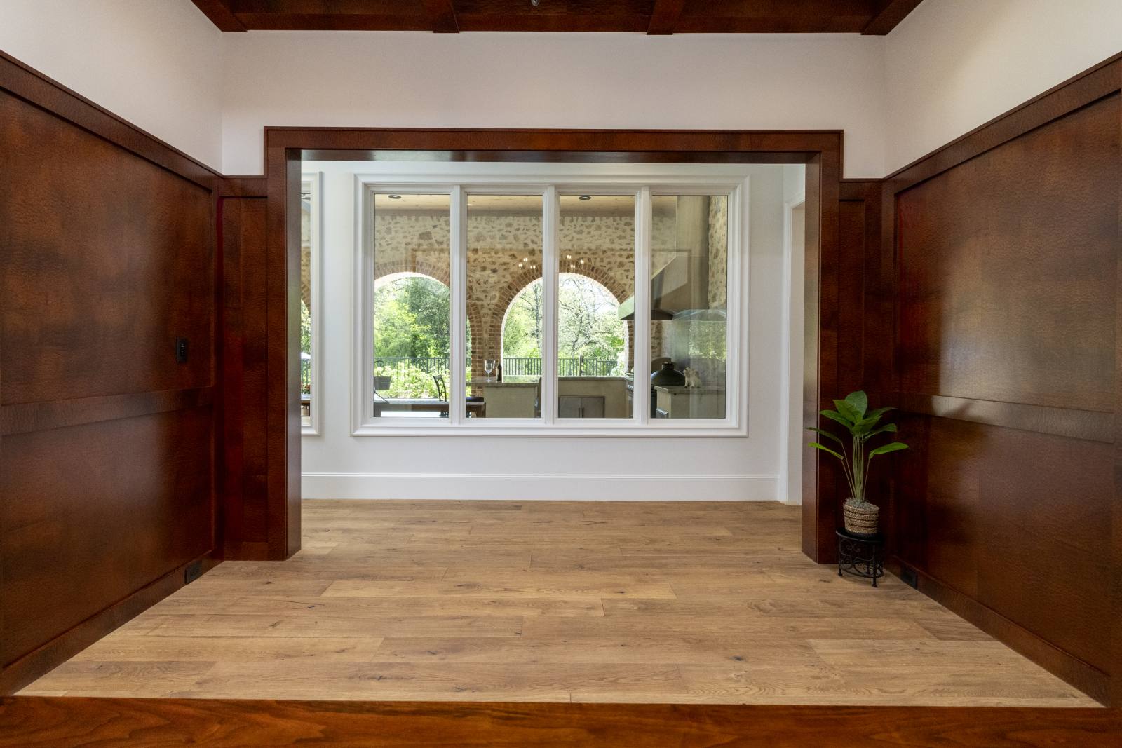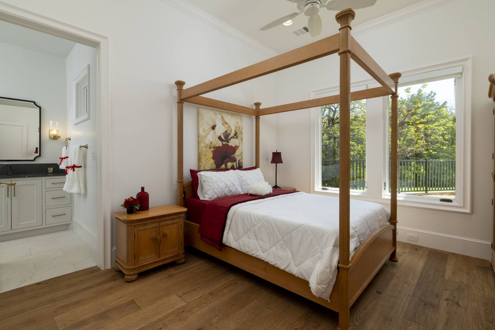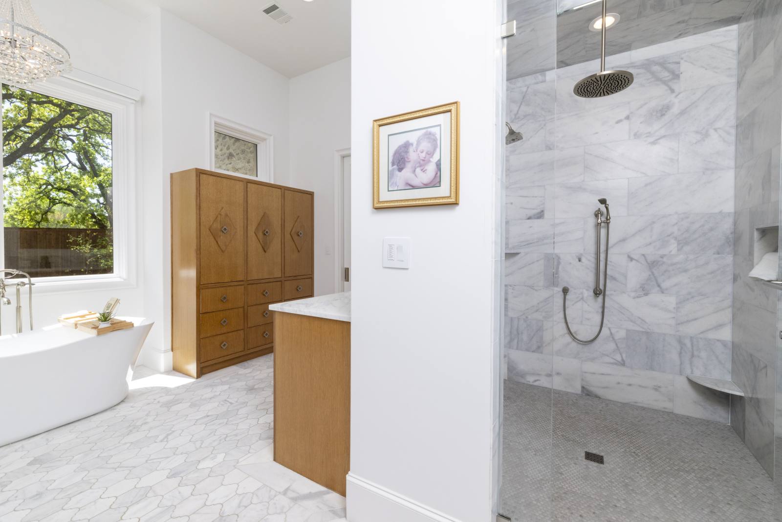 Nestled in the prestigious gated community of Stony Brook, this custom SCH award-winning Mediterranean estate offers 4,501 square feet of refined living space in a serene cul-de-sac backing to a greenbelt with no neighbors on one side. Designed for both elegance and comfort, the home features soaring ceilings, hand-scraped hardwood floors in living areas, and tile finishes throughout each of the six bathrooms. Four spacious bedrooms each include an ensuite bath, while a thoughtfully designed fourth garage bay with full bath accommodates an RV or flexible use. The open-concept kitchen and living area is the heart of the home, anchored by a large center island with breakfast bar and hidden storage. Culinary enthusiasts will appreciate the 7-burner gas cooktop, vent hood, built-in counter-depth refrigerator, and dishwasher. A separate prep kitchen with pantry, double Wolf ovens, microwave, and warming drawer ensures effortless entertaining. The formal dining room provides an elegant setting for gatherings, while the eat-in area overlooks the private backyard oasis. Outdoor living is elevated with a heated pool (with cover), heated spa, and tranquil water feature. The covered patio includes a fully equipped outdoor kitchen with commercial vent hood over the gas grill, complemented by a fire pit and convenient half bath. Modern amenities include owned solar panels with a 25-year transferable warranty and a smart home system controlling lighting, sound, security, fire suppression, and climate. The extra-deep three-car garage offers two prewired EV charging ports, while the fourth bay is designed for RV storage. Zoned for Keller ISD with open enrollment for Carroll ISD, this home combines award-winning craftsmanship, advanced technology, and resort-style amenities in one of the area’s most desirable communities. A rare opportunity to experience luxury, privacy, and convenience in perfect harmony.